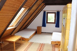 Ferienhaus-Uckermark Schlafzimmer im Obergeschoss rechts für die Selbstversorger Ferien im Boitzenburger Land schon ab 29,- Euro pro Tag