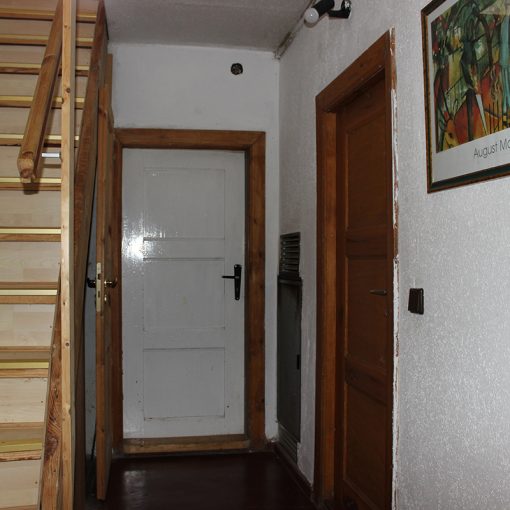 Das Ferienhaus-Uckermark Flur-mit-Treppenaufgang-ins-OG und Abgang zu den Schlafräumen für den Selbstversorger Urlaub im Boitzenburger Land schon ab 29,- Euro pro Tag